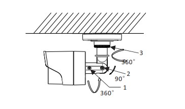 - Отрегулируйте угол наблюдения: ослабьте гайку №3 для регулировки поворота (0° ~ 360°); затяните гайку №3; ослабьте винт №2 для регулировки наклона (0° ~ 180°); затяните винт №2; ослабьте винт №1 для регулировки азимута (0° ~ 360°); затяните винт №1.