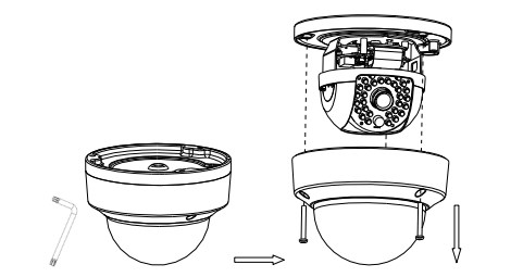 - Ослабьте установочные винты с помощью шестигранного ключа (ключ прилагается), чтобы снять купол;