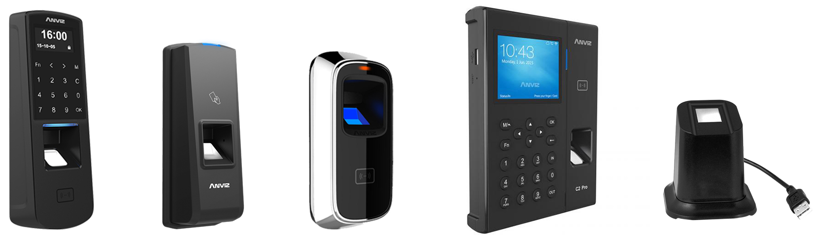 Поддерживается работа со следующими моделями устройств: Anviz P7, M5, T5, а также терминалом учета рабочего времени Anviz C2. Работа может быть организована только в локальном режиме - то есть, биометрические шаблоны хранятся на самих устройствах Anviz.